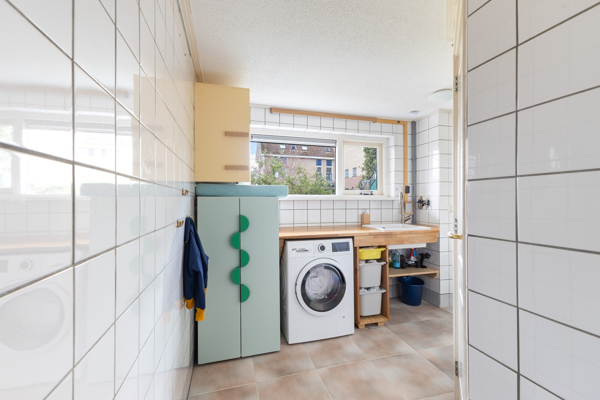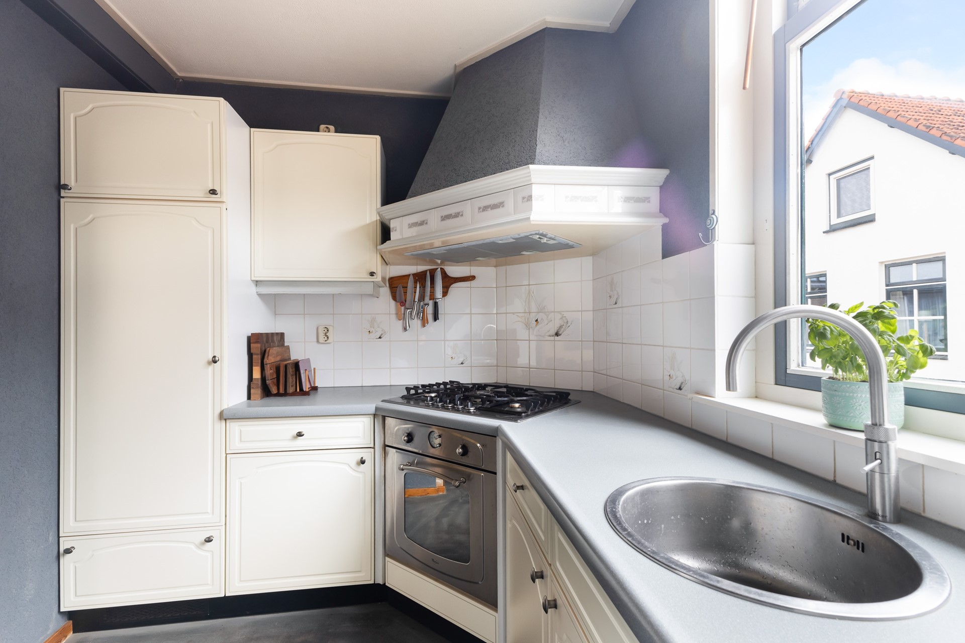 De keuken sluit hier mooi op aan en is voorzien van inbouwapparatuur en een Quooker. Praktisch en netjes, met alles wat je nodig hebt.