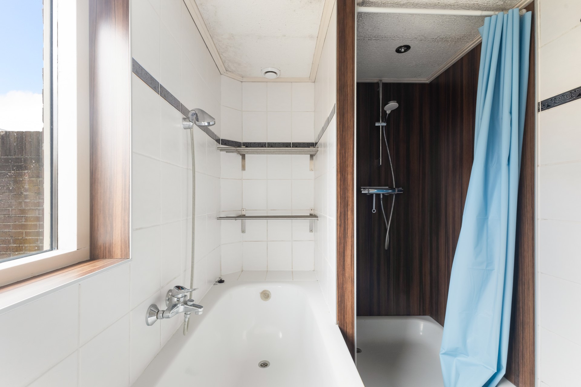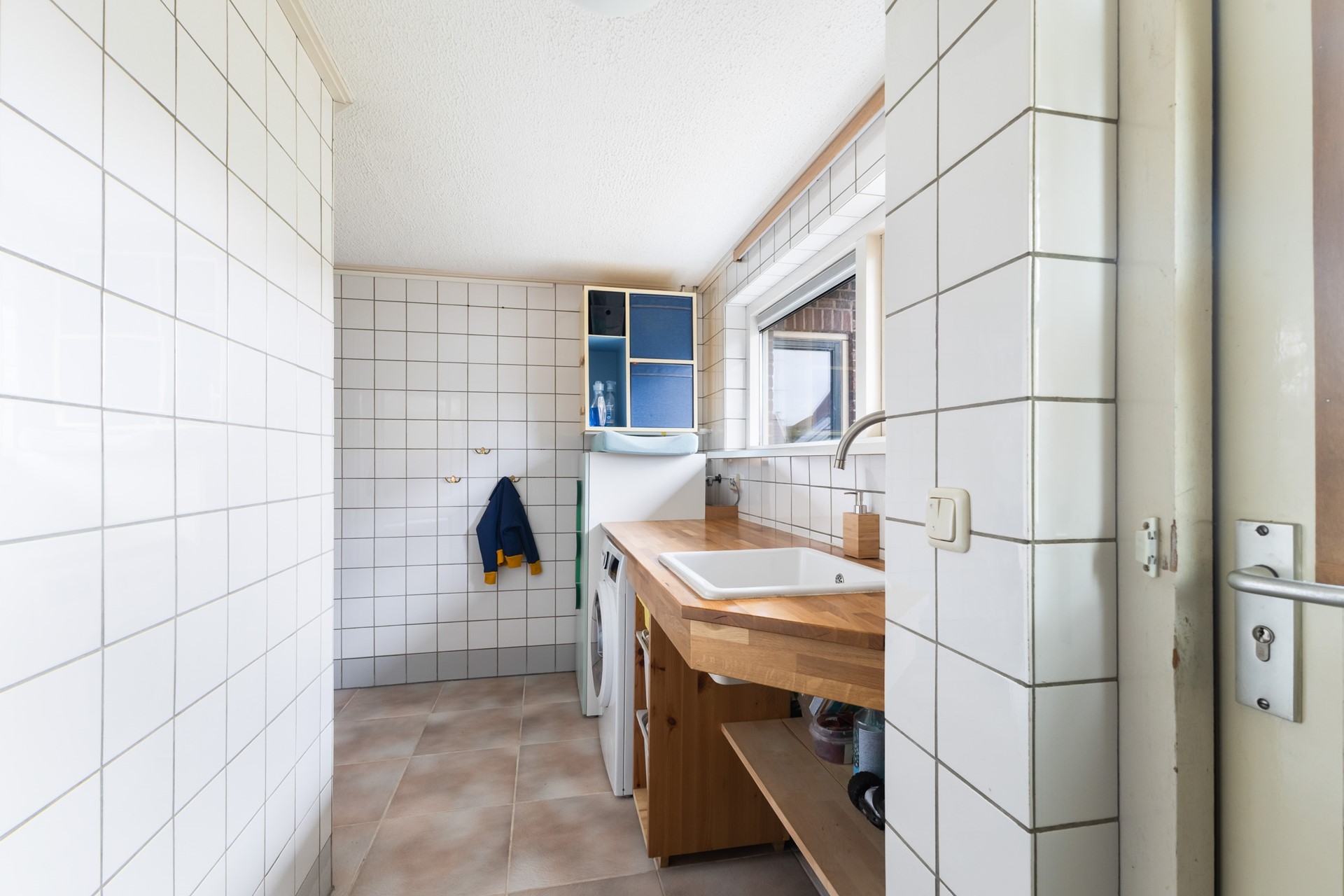 Via de tweede hal/bijkeuken kom je bij het toilet, de badkamer en de aansluiting voor de wasmachine. De badkamer ligt op de begane grond en is voorzien van een ligbad, douche en wastafelmeubel.