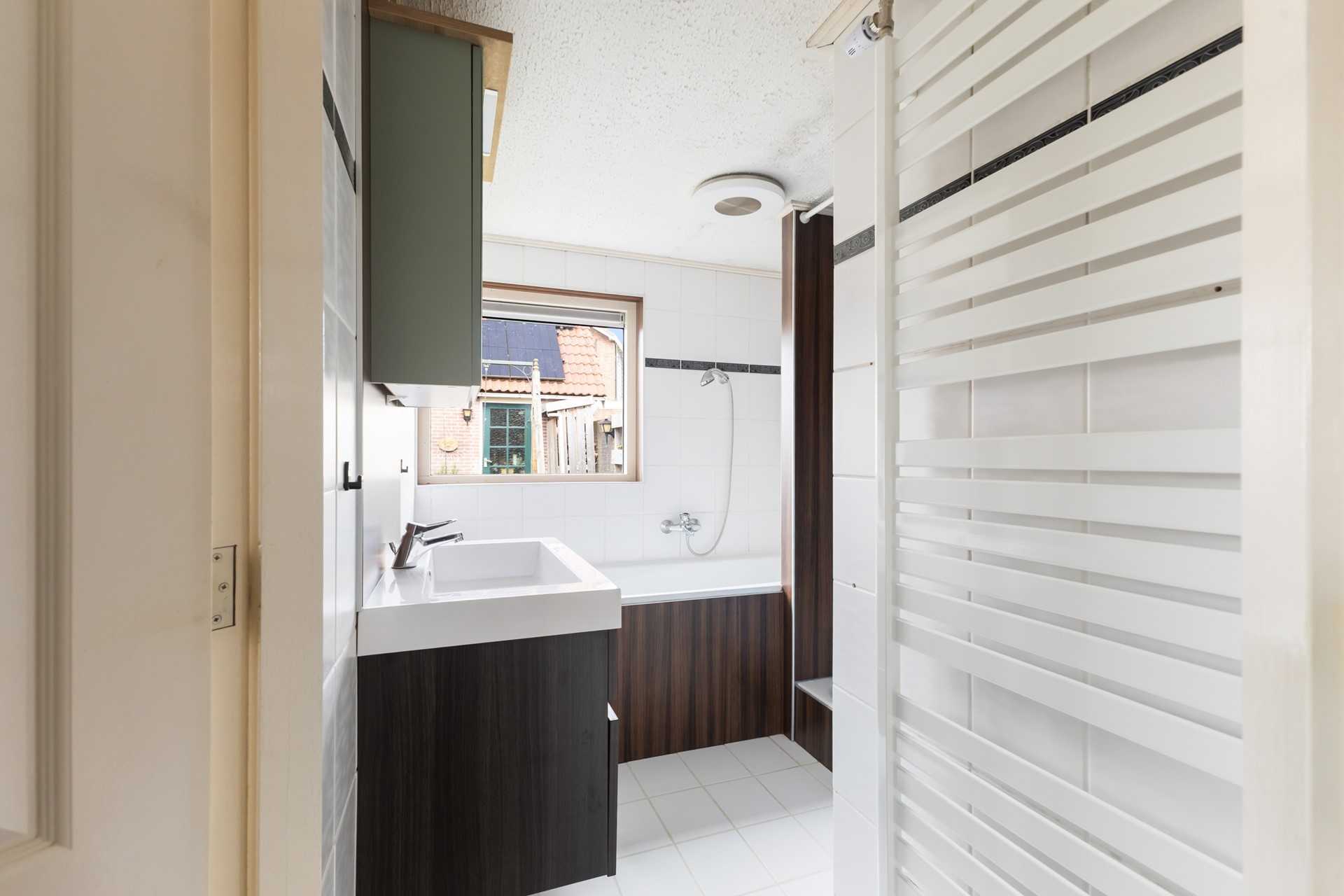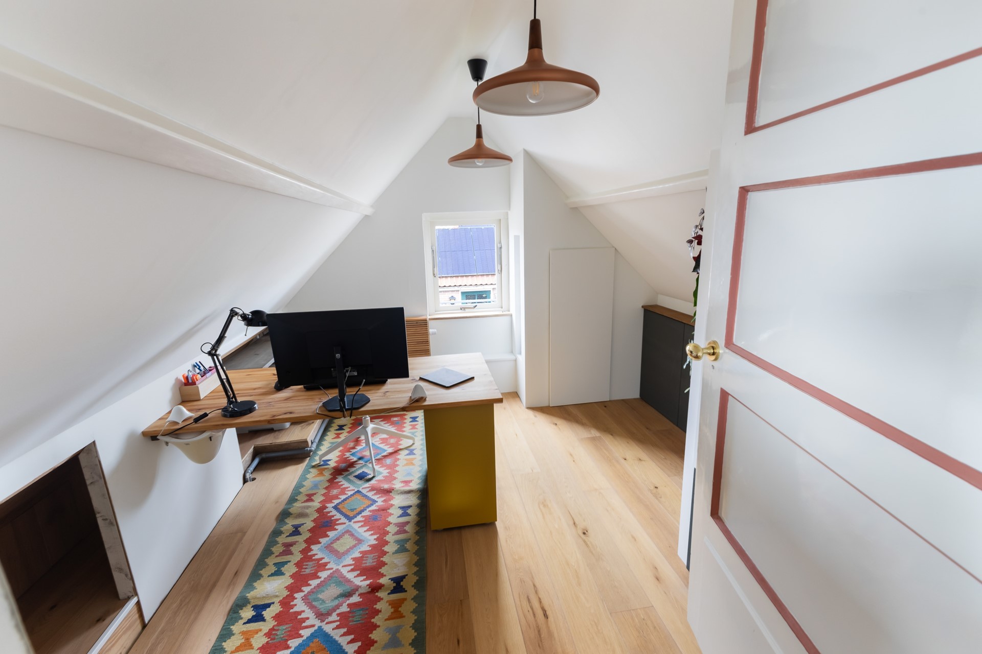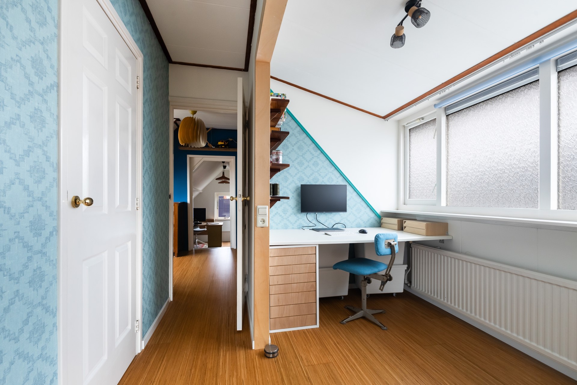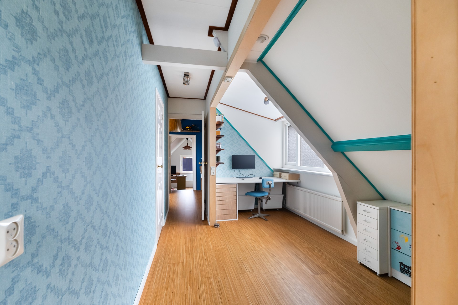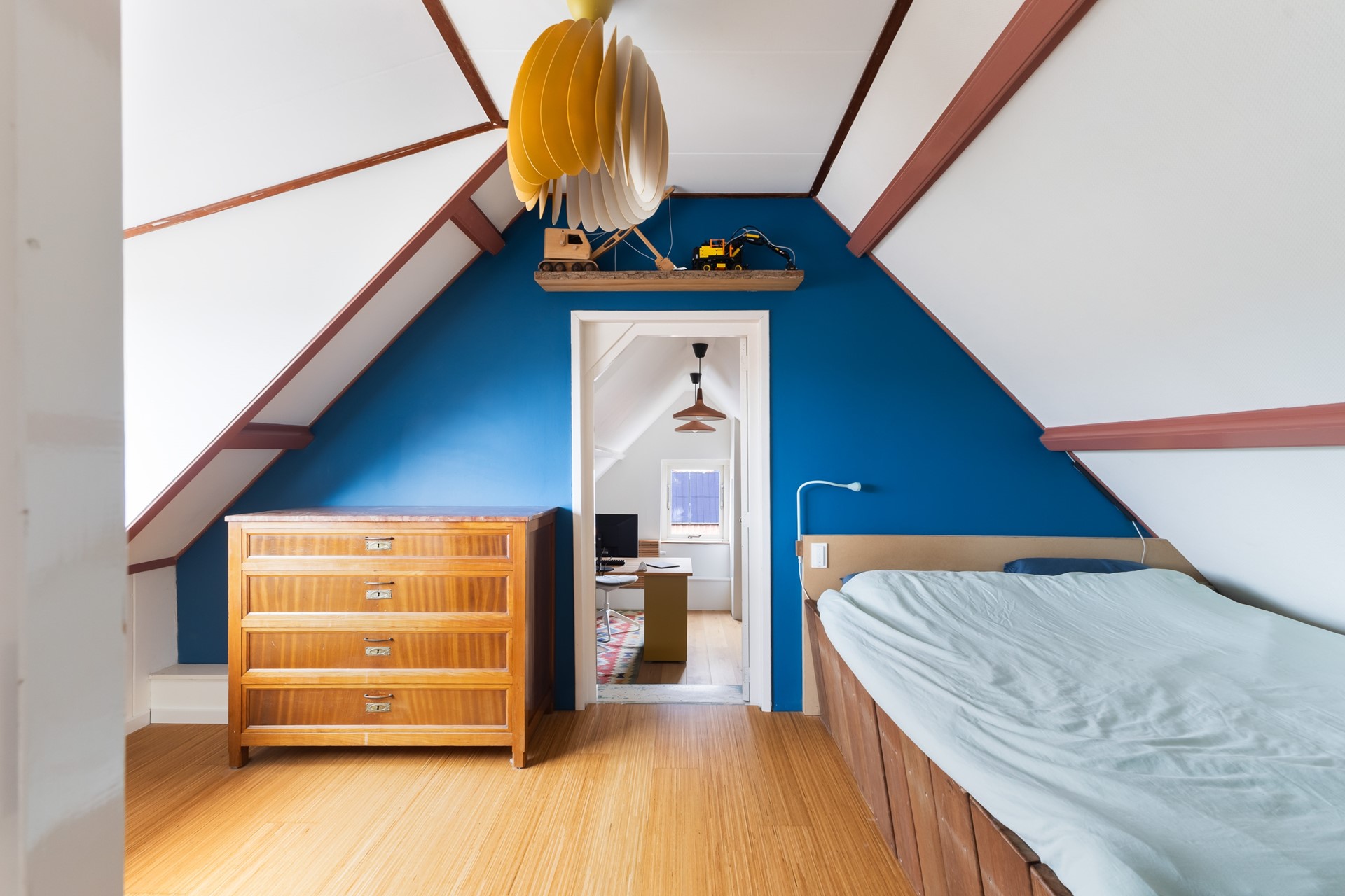 De derde slaapkamer is nu open gemaakt, maar kan vrij eenvoudig weer dicht gemaakt worden. Dat maakt het flexibel, afhankelijk van hoe je het zelf wilt gebruiken.