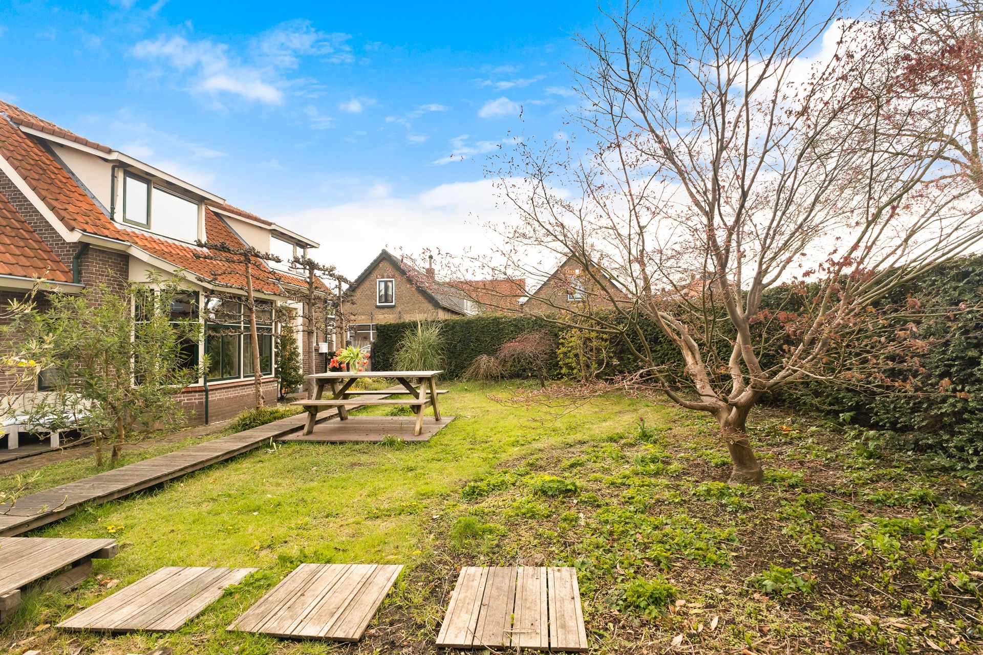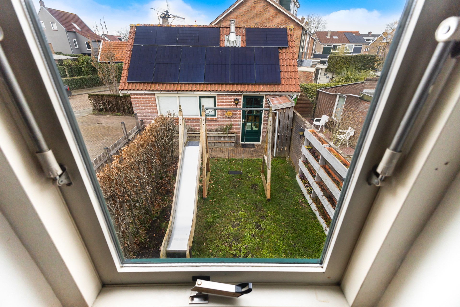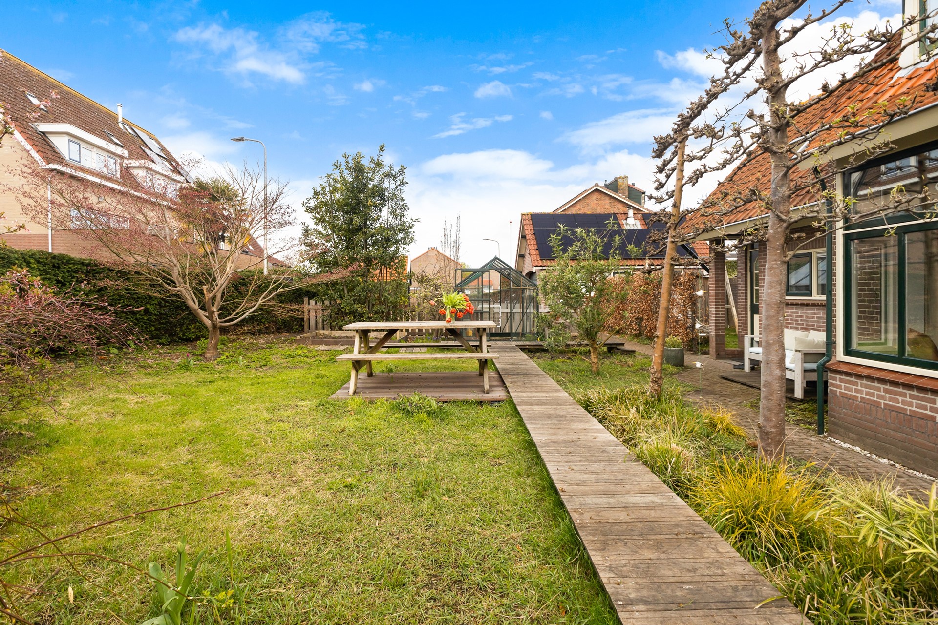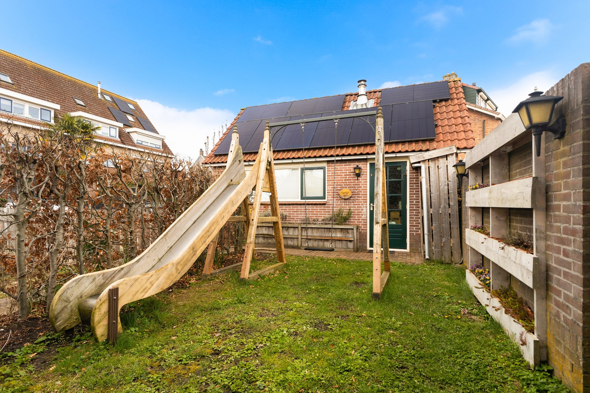 Buiten zit misschien wel een van de grootste pluspunten van deze woning. De tuin ligt op het zuidwesten, dus zon heb je hier volop. Of je nu wilt tuinieren, relaxen of met vrienden buiten wilt zitten – hier kan het allemaal.