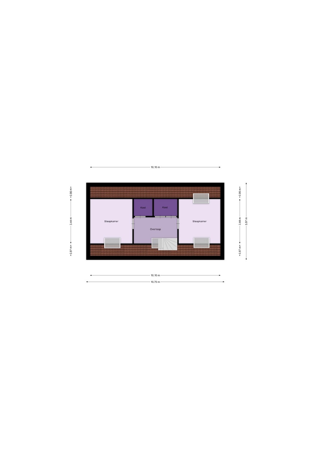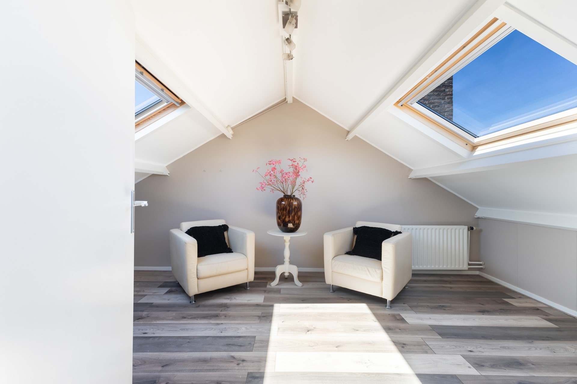 De tweede verdieping beschikt over nog twee ruime slaapkamers, beide voorzien van dakramen. De overloop biedt toegang tot een praktische opbergkast. In totaal telt de woning vijf volwaardige slaapkamers.