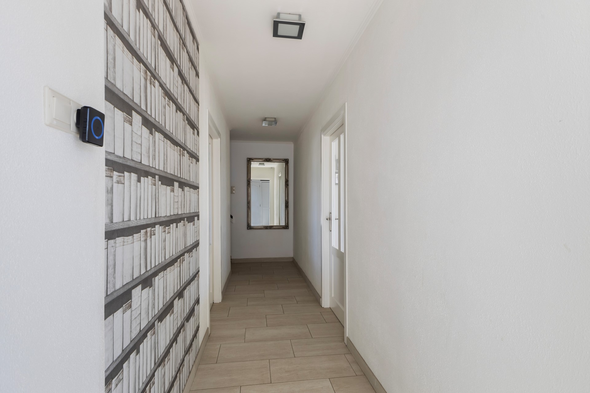 De dubbele garage is volledig afgewerkt met een plavuizenvloer en beschikt over verwarming, elektra, water en een bergzolder. Deze ruimte is ideaal voor het stallen van auto’s of opslag, maar leent zich ook uitstekend voor het inrichten van een kantoor, praktijk of atelier aan huis.