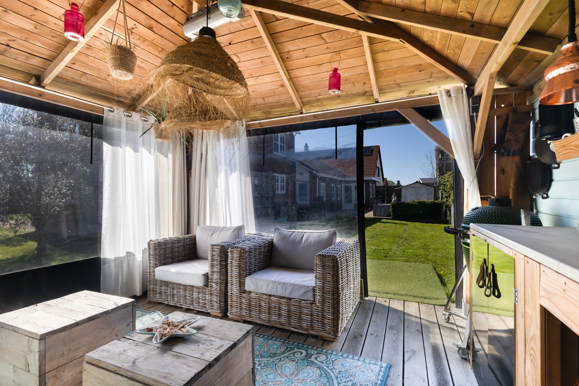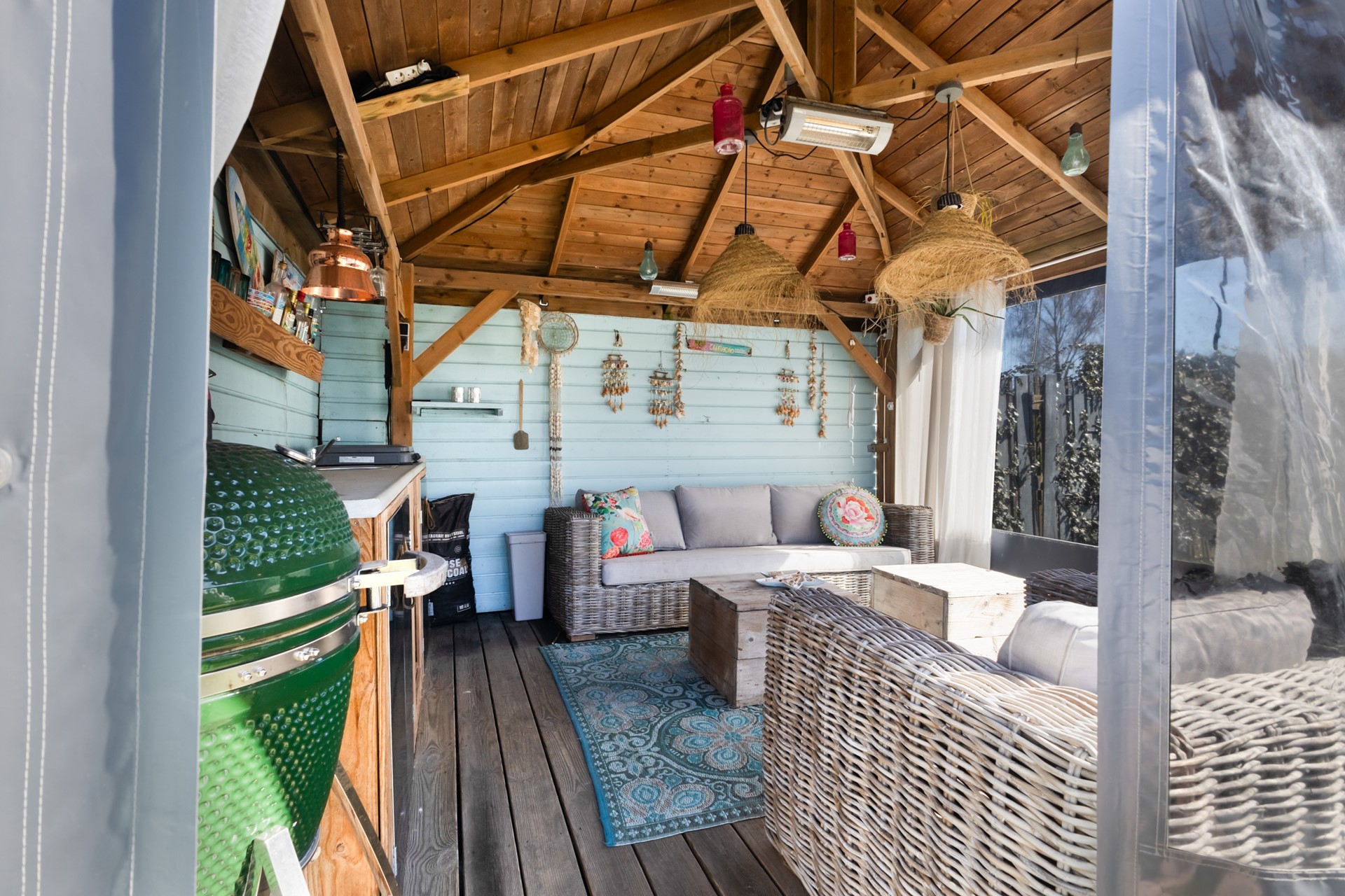 Daarnaast is er een tuinhuis met buitenkeuken, een sfeervolle plek om samen te komen, te barbecueën en volop te genieten van het buitenleven. Het grote grasveld biedt veel ruimte om te spelen en te ontspannen, met rondom een vrij en beschut gevoel.