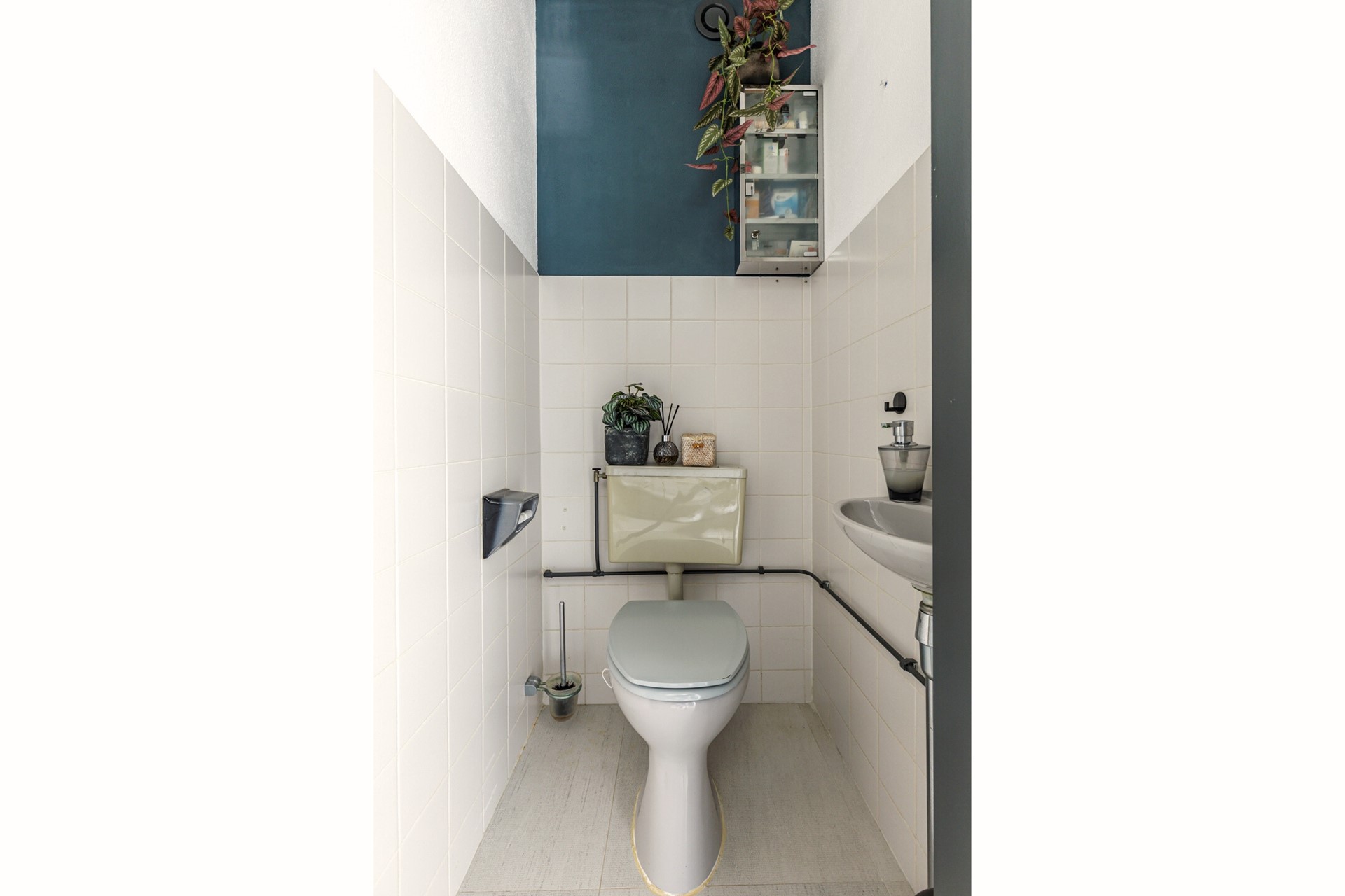 Aan de voorzijde van de woning bevindt zich de keuken. Deze is ruim van opzet en biedt een uitstekende basis voor wie hier op termijn een moderne keuken naar eigen smaak wil realiseren. Daarnaast is er een handige trapkast aanwezig voor extra opslag. Vanuit een tweede hal bereik je het toilet en de trapopgang naar de eerste verdieping.