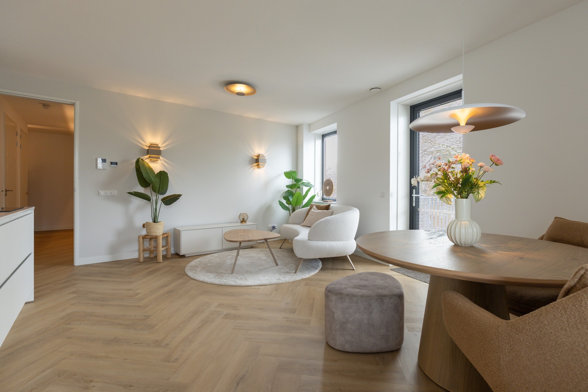 De woonkamer is licht en strak afgewerkt, met grote raampartijen die zorgen voor veel daglicht en een fijne sfeer. De vloerverwarming zorgt voor een aangenaam en gelijkmatig binnenklimaat. Via de woonkamer heb je toegang tot het balkon op het westen, waar je heerlijk kunt genieten van de middag- en avondzon.