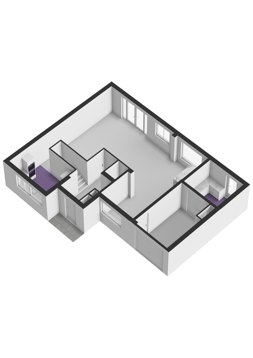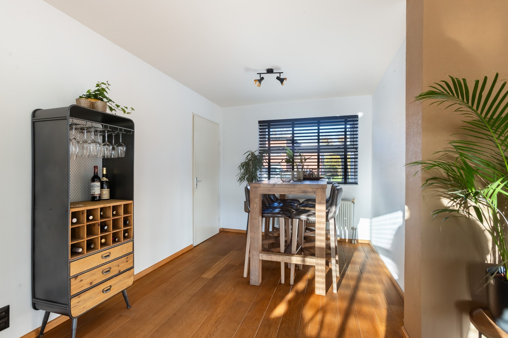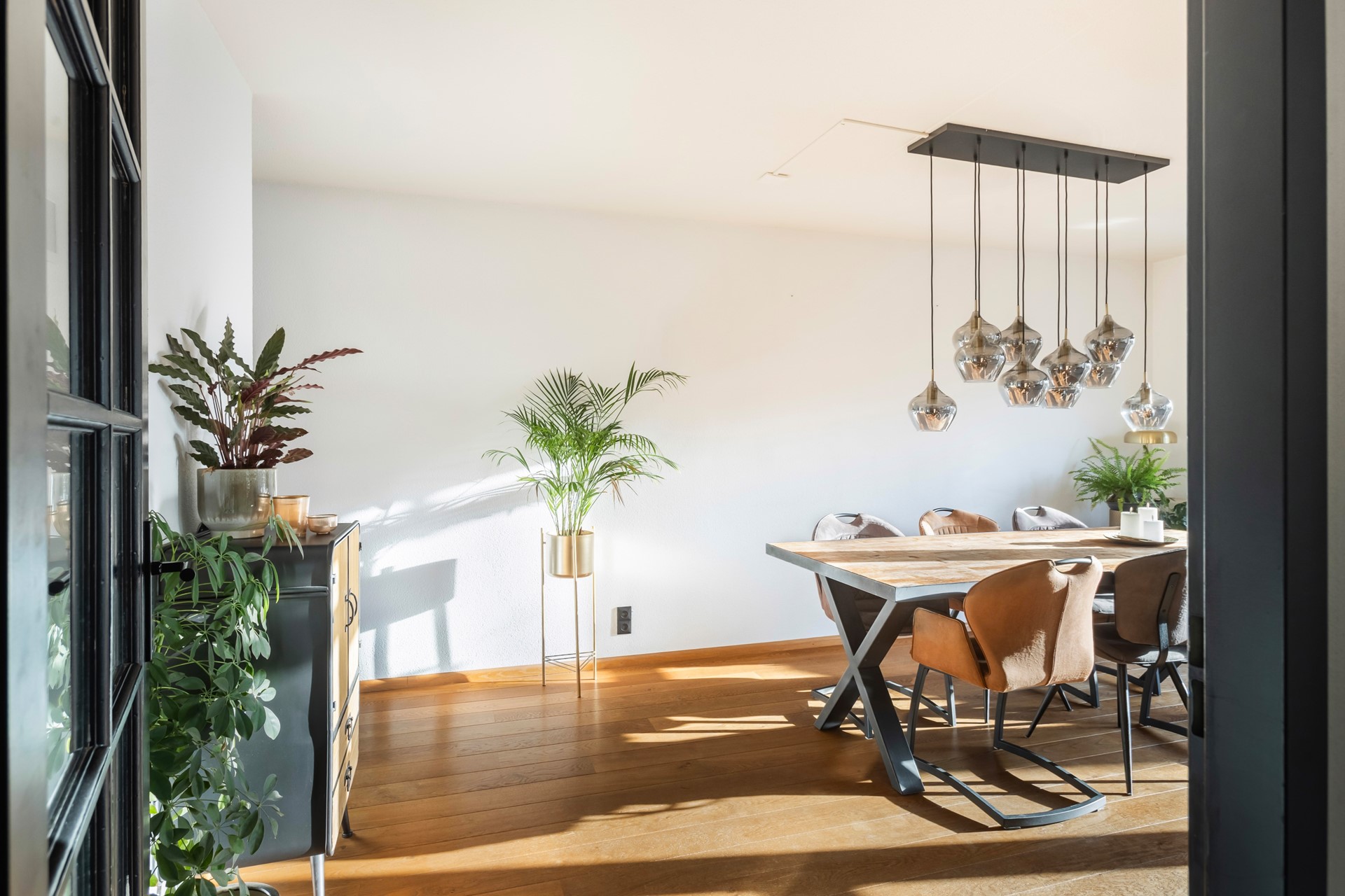 De hal geeft toegang tot de meterkast, de toiletruimte en de trapopgang. Aan de voorzijde ligt de moderne keuken in een zwarte uitvoering, met veel licht dankzij het grote raam. De keuken is uitgerust met een kokendwaterkraan, gas kookplaat, afzuigkap, vaatwasser, koelkast, vriezer en een praktische voorraadkast. De woonkamer bevindt zich aan de achterzijde en is heerlijk licht door de grote ramen en openslaande deuren naar de tuin. Hier is ruimte voor een grote eettafel én een ruime zithoek. Via de woonkamer bereik je de aanpandige garage — ideaal voor fietsen, opslag of hobby’s.