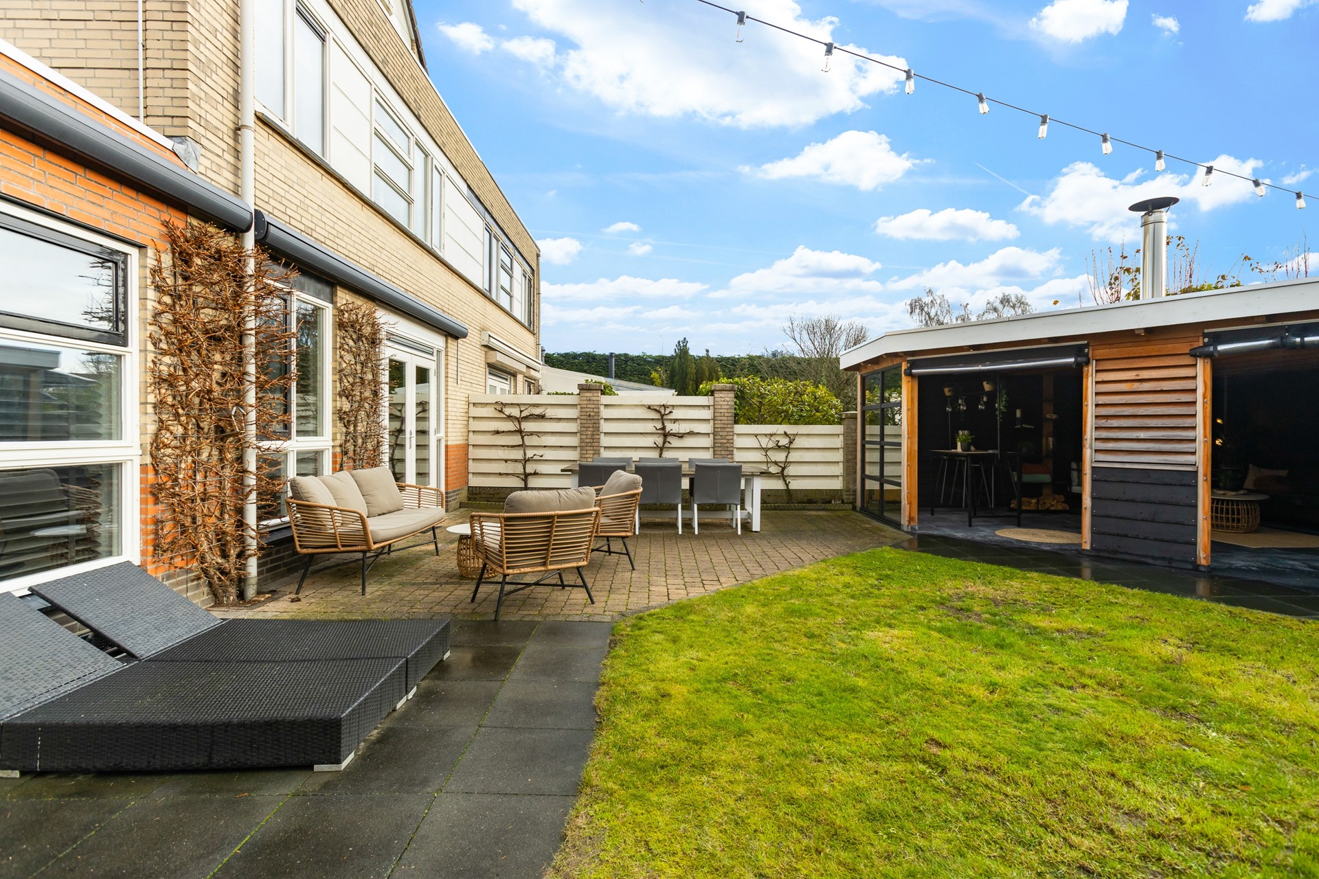De achtertuin is breed, diep en biedt veel privacy. De riante tuinkamer met houtkachel is de absolute eyecatcher: een heerlijke plek om het hele jaar door te loungen, eten of borrelen. Daarnaast staat in de tuin een praktische schuur voor extra opslag. Het zonnescherm aan de achterzijde zorgt voor schaduw tijdens zonnige dagen. De voortuin zorgt voor een nette, verzorgde uitstraling aan de straatzijde.