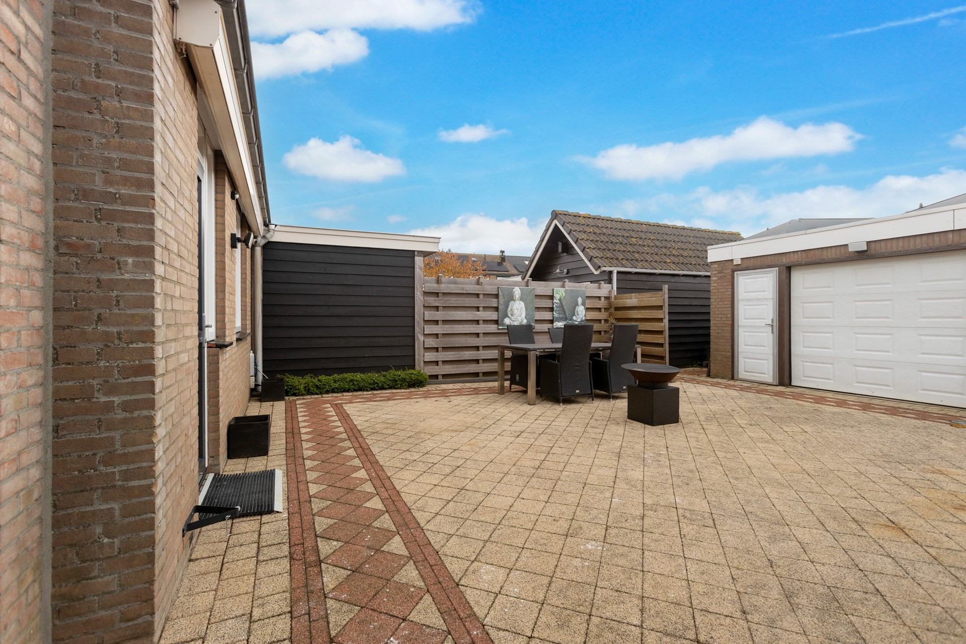Rondom de woning ligt een verzorgde tuin met veel privacy. Aan de zijkant bevindt zich een eigen uitrit naar de straat en toegang tot maar liefst drie garages: twee vrijstaande en één aangebouwde. Deze zeldzame hoeveelheid bergruimte maakt de woning ideaal voor hobbyisten, zelfstandigen of verzamelaars. De garages zijn uitstekend bereikbaar en bieden volop gebruiksmogelijkheden – van opslag tot werkplaats.