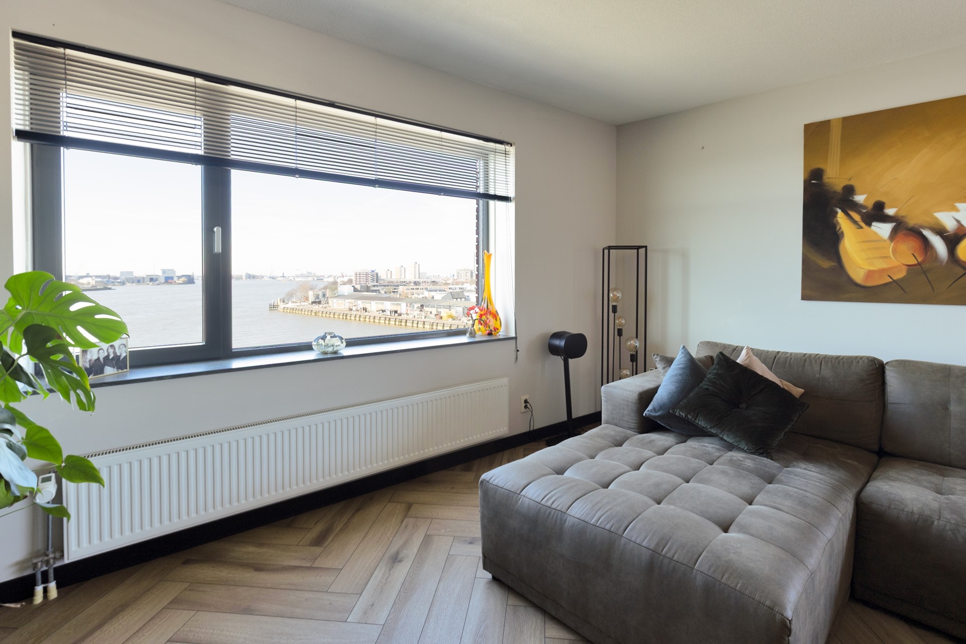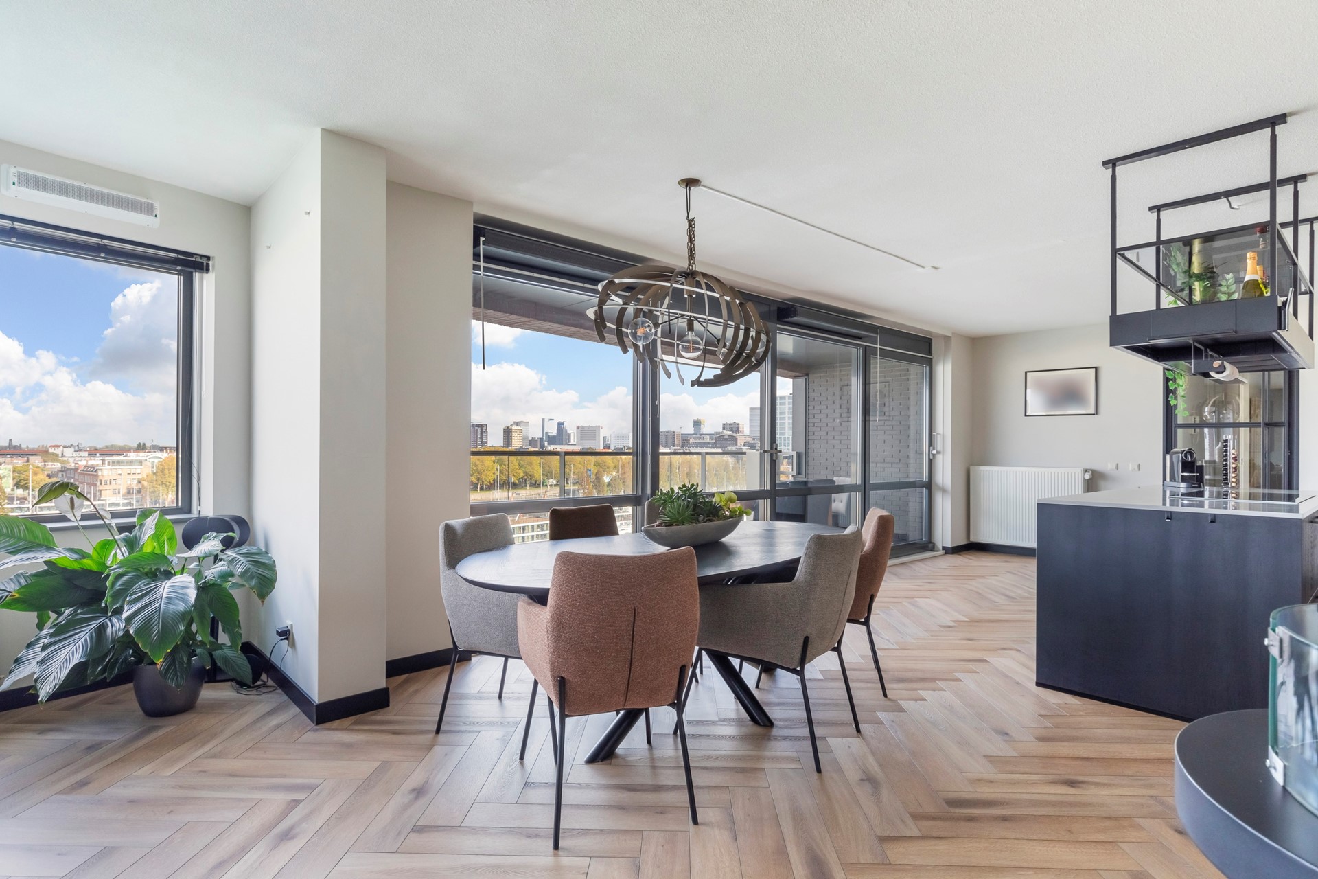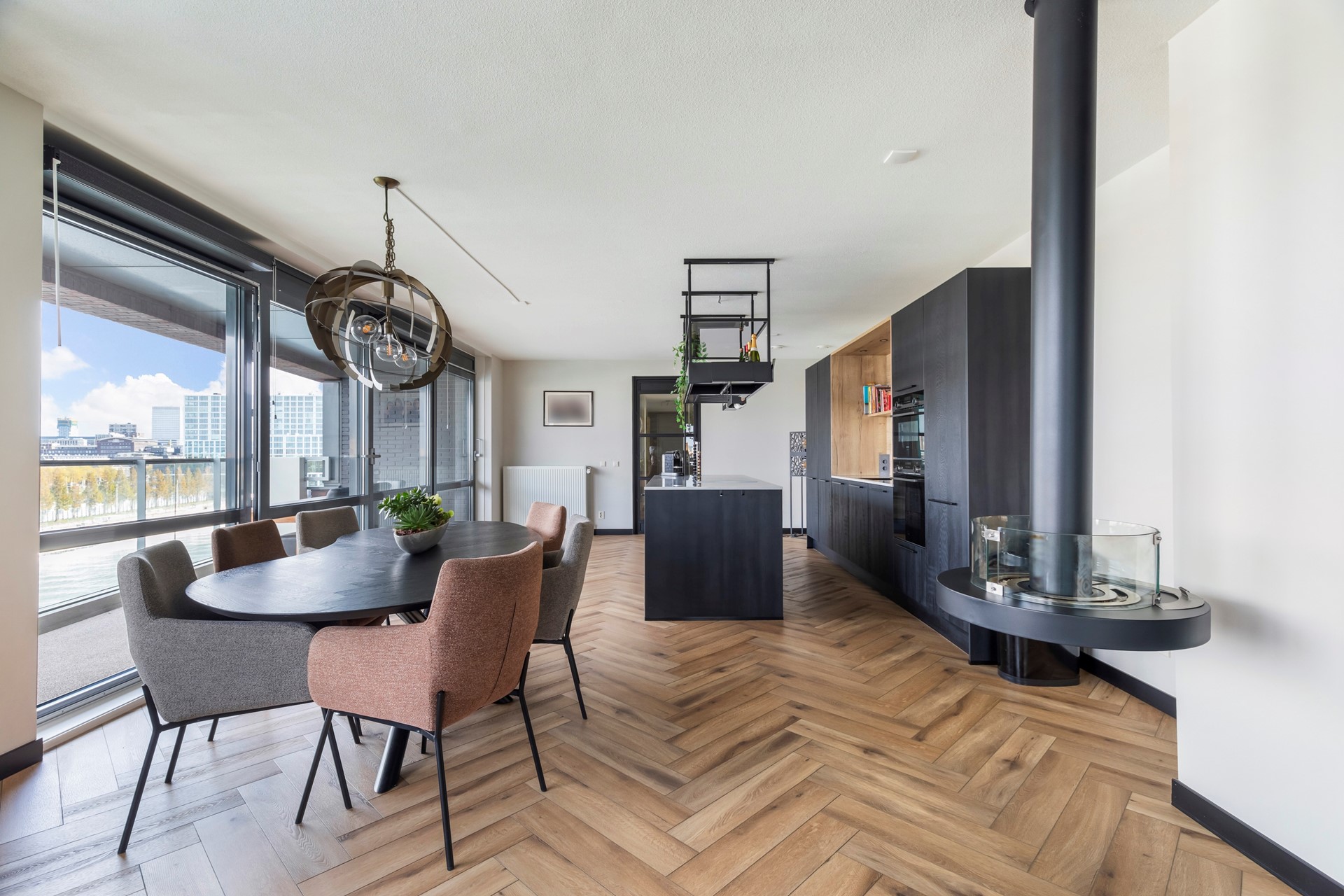 Wonen met een prachtig uitzicht over de Rotterdamse haven én de skyline van de stad? Dat kan in dit luxe en royale 4-kamerappartement van circa 135 m², gelegen op de 6e verdieping van een modern complex in het geliefde Lloydkwartier. De woning is recent gemoderniseerd en volledig instapklaar. Grote raampartijen zorgen voor een prachtige lichtinval en een panoramisch uitzicht over het water en de stad. Dit appartement, gebouwd in 2010 en voorzien van energielabel A, is een toonbeeld van eigentijdse elegantie, met een recent modernisering die het de perfecte balans geeft tussen stijl en comfort. De PVC-visgraatvloer en strak gestuukte wanden zorgt voor moderne uitstraling. De open keuken met kookeiland, luxe apparatuur en een composiet werkblad maakt koken tot een waar genoegen. Bovendien zorgt de gelhaard voor een extra vleugje sfeer en warmte, ideaal om de avonden gezellig door te brengen. Met drie slaapkamers, een ruim balkon/loggia en een eigen parkeerplaats is dit een ideale woning voor wie ruim, comfortabel en stijlvol wilt wonen in de stad.