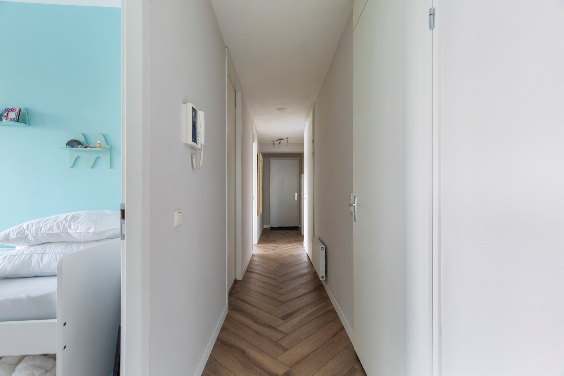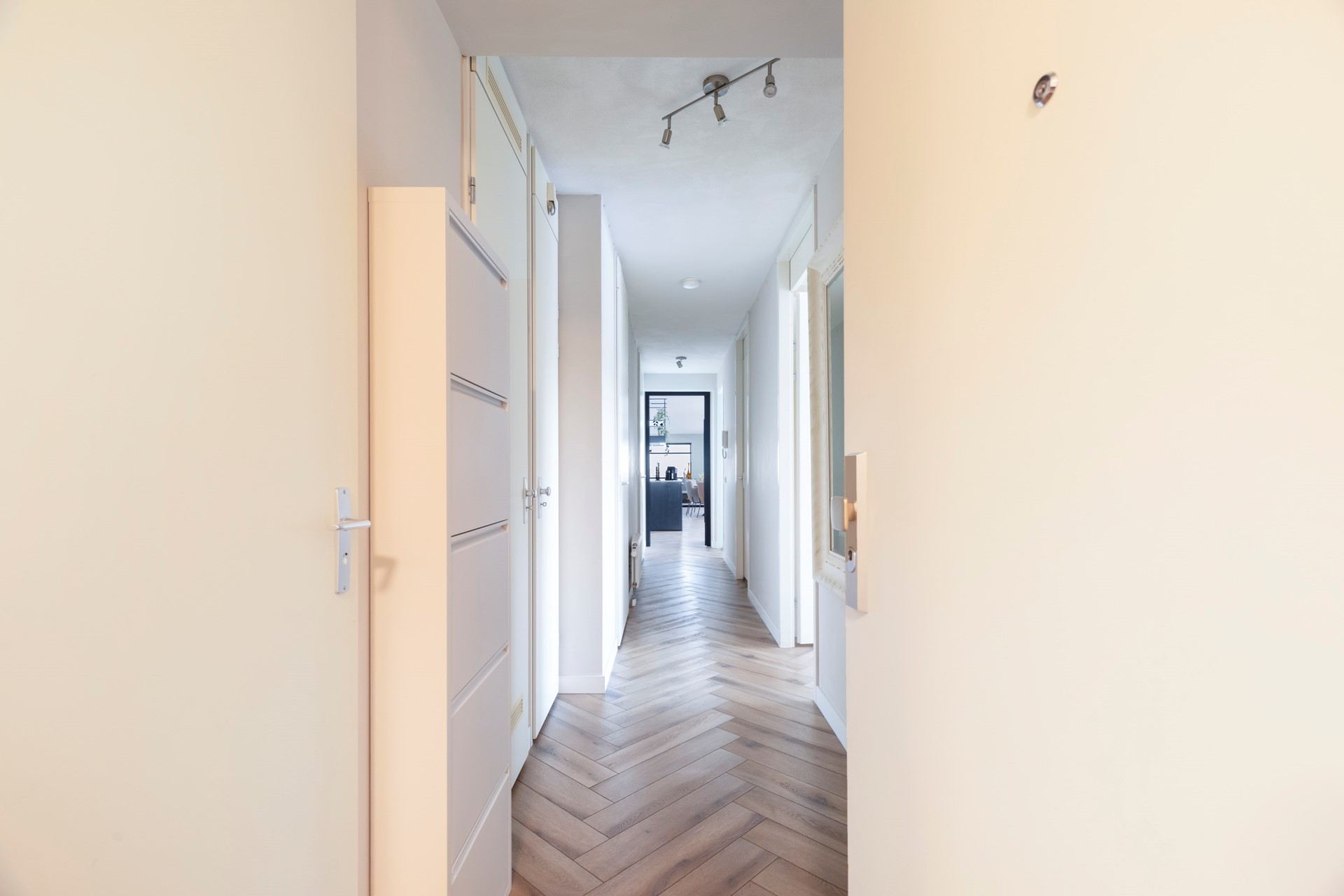 Dit ruime en stijlvolle 4-kamerappartement van ca. 135 m² op de zesde verdieping biedt alles wat je zoekt; licht ruimte en luxe. Via de lift bereik je de verdieping en stap je binnen in een royale hal met videofoon waar direct de hoogwaardige afwerking opvalt. De strak gestuukte wanden en de visgraatvloer zorgen voor een luxe uitstraling. Vanuit de hal zijn de verschillende vertrekken bereikbaar.