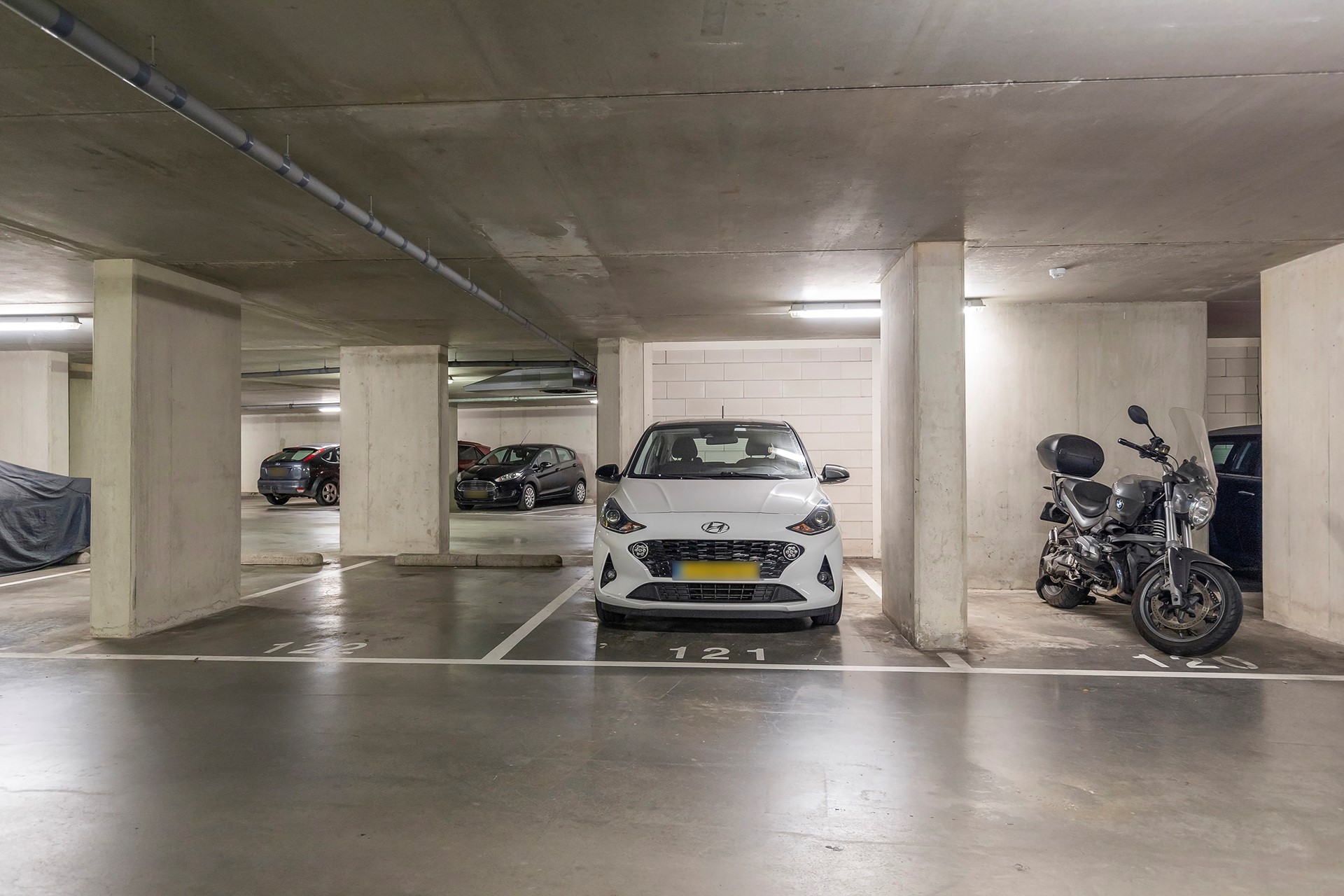 In de onderbouw bevindt zich een ruime privéberging, ideaal voor fietsen of extra opslag. Bij de woning hoort één eigen parkeerplaats in eigendom. Daarnaast is er de mogelijkheid een tweede parkeerplaats te huren direct bij het complex — een absolute meerwaarde in deze populaire stadswijk.