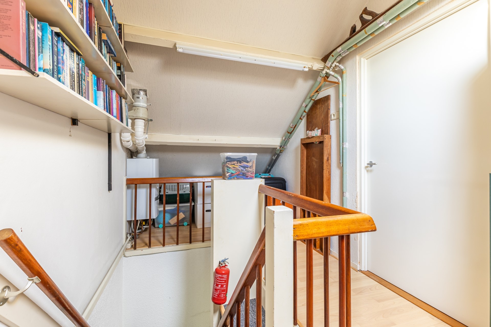 Tweede verdieping: Via een vaste trap bereikt u de zolderverdieping. Aan de voorzijde bevindt zich de CV-opstelling en extra bergruimte. De grote zolderkamer is vergroot met een dakkapel met kunststof kozijnen en vormt een volwaardige vierde slaapkamer.